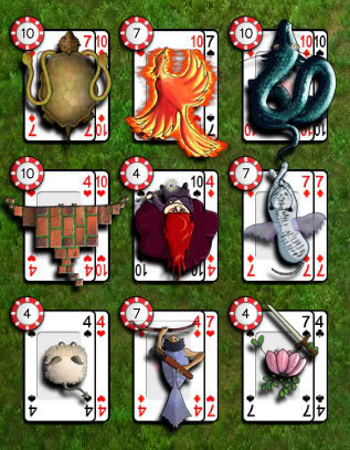 A computerized version of a card game David invented. It's similar to Magic: The Gathering but uses a standard deck of cards. This was the first time I had ever made artwork for a game, and also my very first time making digital art.