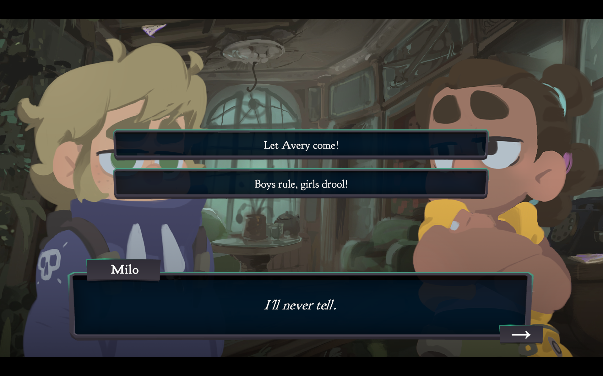 UI, usability and accessibility really matter. I had no idea this would make a difference to me, but it really helped when entries had friendly, clear, visible user interfaces, good/intuitive control schemes, all the standard visual novel features such as rollback, autoplay, skip, and the like. Additional accessibility options such as more readable font options and turning off special effects such as chromatic aberration were very appreciated as well. At the very least, I expect to be able to save and load my progress. If you do not have a save and load functionality in your VN, please… question your life choices.